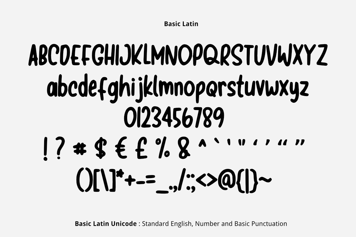 Basic Latin (Standard English character , number, symbol)